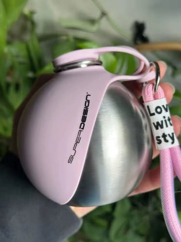 Portez votre BuddyPup™ avec fierté grâce à l'élégante sangle « Love with Style ». Son design sphérique ergonomique tient parfaitement dans votre main, et sa housse de protection en silicone offre une prise confortable tout en mettant en valeur ces adorables motifs de nœuds. Une hydratation aussi tendance que fonctionnelle, prête pour toutes les sorties.